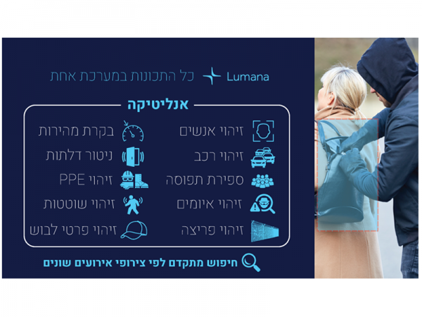"לומנה, מביאה בשורה אמיתית לעולם האבטחה, קפיצת מדרגה שעוד לא נראתה בתחום זה בעולם. המערכת הופכת כל מצלמת אבטחה למכשיר מבוסס בינה מלאכותית המאפשר לזהות אירועים מגוונים וחריגים ע"פ צורכי הביטחון והתפעול. לומנה מסוגלת לנתח מיליוני שעות של וידאו בזמן אמת וזו יכולת המעניקה למנהלי האבטחה כלי מתקדם אשר יפתח אפשרויות רבות שעד היום היו בגדר מדע בדיוני".